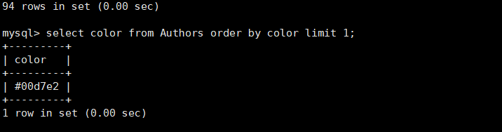 mysql> select ((substr(group_concat((select group_concat(schema_name) from information_schema.schemata)),1,1))=0); +-----------------------------------------------------------------------------------------------------+ | ((substr(group_concat((select group_concat(schema_name) from information_schema.schemata)),1,1))=0) | +-----------------------------------------------------------------------------------------------------+ | 1 | +-----------------------------------------------------------------------------------------------------+ 1 row in set (0.00 sec)